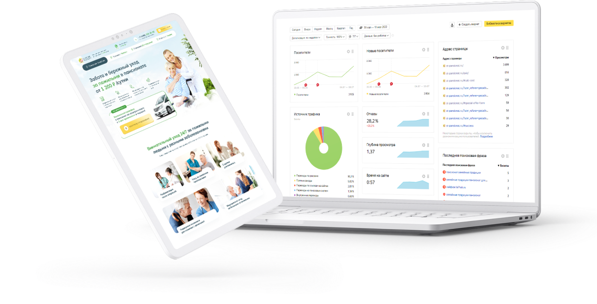 - Расчёт CTR, CR, CPA, CPO, ROI/ROMI, CPC